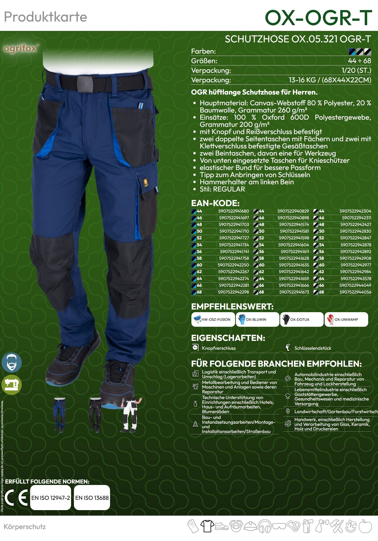 Arbeitshose OGRIFOX 260 g/m² weiß/schwarz/grau (Gr.46-60)